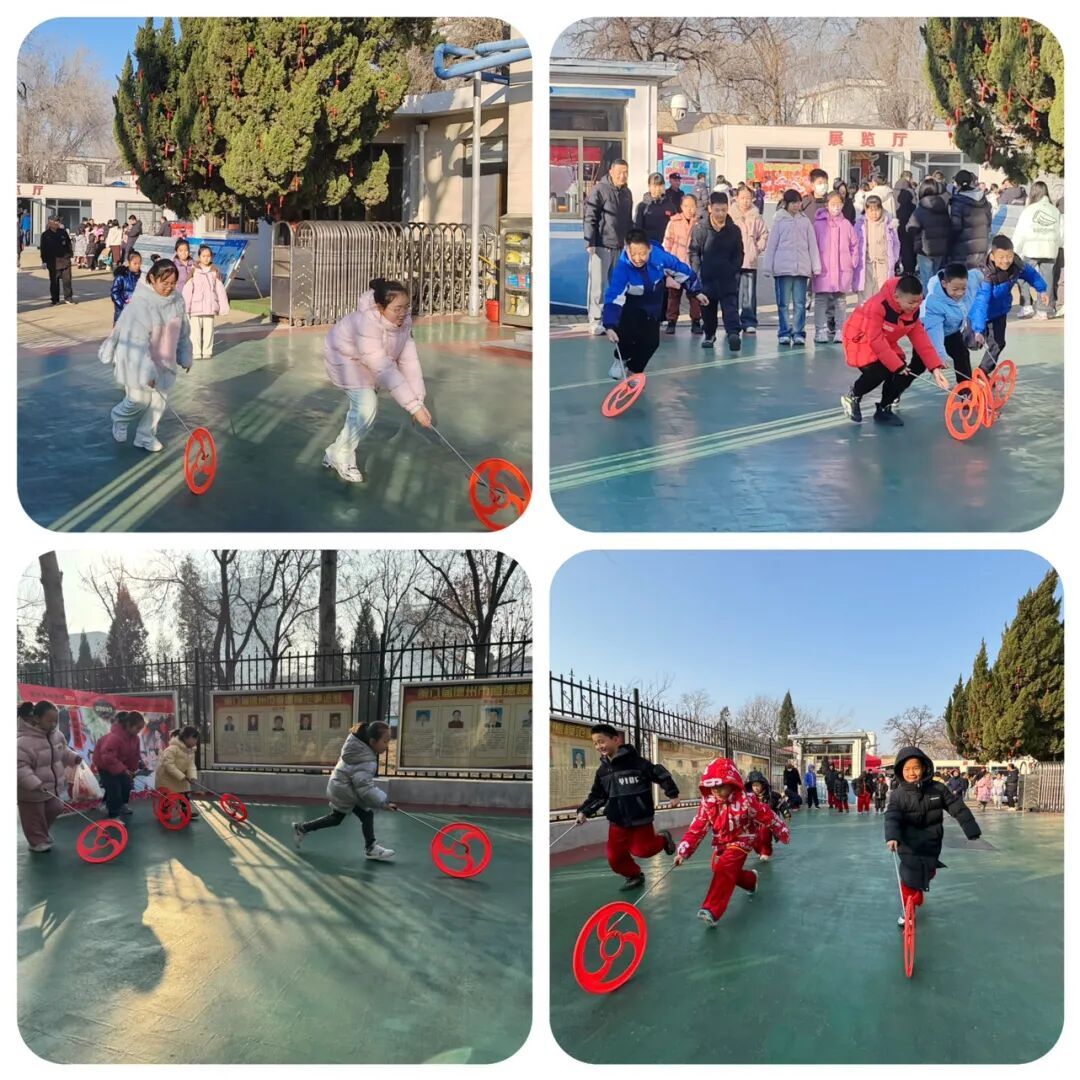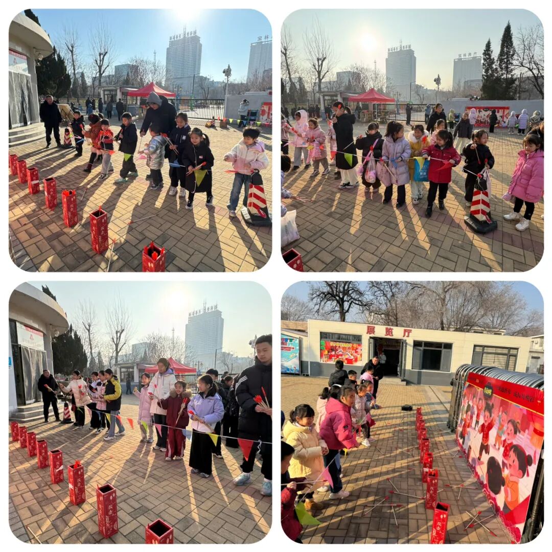户外游戏区里,孩子们的笑声此起彼伏。投壶游戏中,他们屏住呼吸,瞄准壶口,一次次尝试,体验着古代文人的雅致与乐趣;滚铁环比赛时,孩子们手持铁钩,灵活地控制着铁环,在赛道上穿梭前行,感受着传统游戏的魅力。